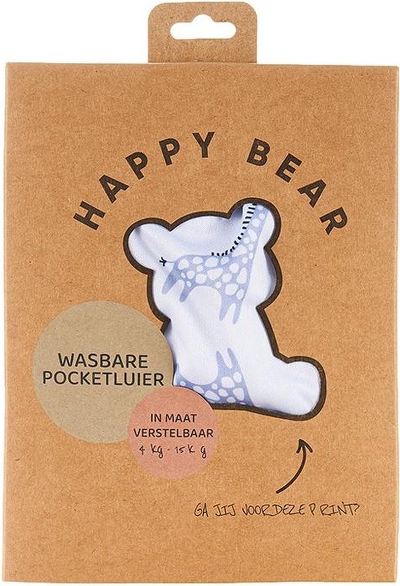 HappyBear | Pocketluier – Blue Giraffe | Wasbare luier | Onesize – 5kg t/m 17kg | Dubbele lekgoten – minder kans op doorlekken | Dubbele pocketopening | Inclusief bamboe booster & microvezel booster