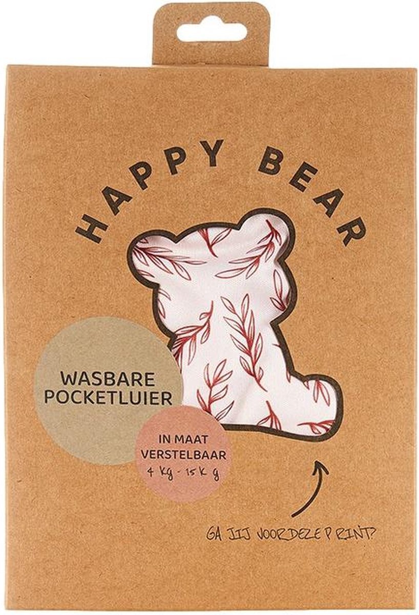HappyBear | Pocketluier – Twiggy | Wasbare luier | Onesize – 5kg t/m 17kg | Dubbele lekgoten – minder kans op doorlekken | Dubbele pocketopening | Inclusief bamboe booster & microvezel booster