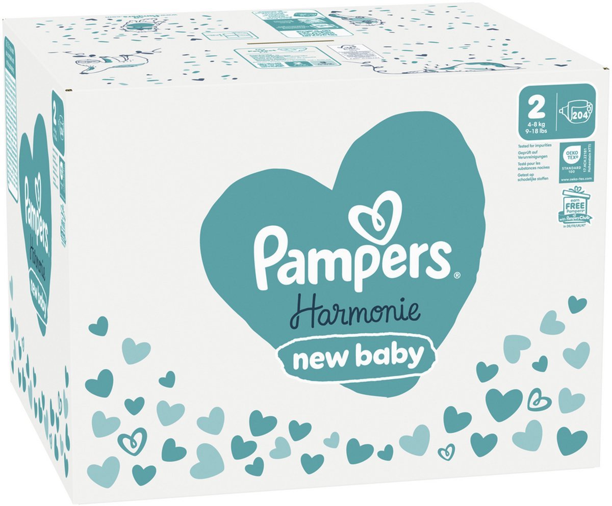 Pampers Harmonie Luiers Maat 2 (4kg-8kg) – 204 Luiers – Maandbox